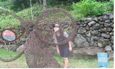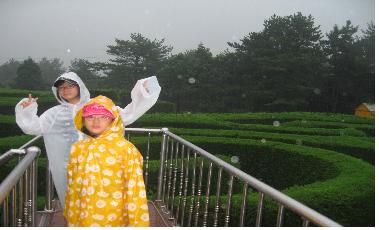 김녕미로공원 비자림에서는 비도 온데다가 나무를 보는 것은 꽤나 따분했다. 하지만 이곳은 정말 환상적이였고 책에서 있는 미로만 줄로 긋던 재미와는 천배 만배 차이였다. 비가와도 이곳은 재미있었다. 어느 독일 사람이 여길 생각해내서 만들었다고 한다. 처음에는 온 가족이 같이 미로를 찾았다. 그런데 왠일인지 한번 만에 찾았다. 그래서 종을 울렸다. 한 번만에 찾으니 기분이 좋았다. 이번에는 아빠가 나랑 예희랑 같이 가고 엄마랑 아빠랑 같이 가자고 했다. 그래서 우리먼저 출발했다. 우리는 그 전에 갔던 길을 생각해서 엄마 아빠보다 먼저 찾았다. 3번이나 같은 길을 가서 엄청나게 많이 걸은 수난 빼고는 잘 찾은 것 같았다. 하지만 아빠는 새로운 것을 택하기 때문에 그전과 다른 길을 선택했다고 한다. 하지만 나중에 수난을 다 겪고 나와서 지도를 보니 길은 우리가 처음에 갔던 길 밖에 없었다. 결국 2번째 시합에서는 아빤 온갖 수난을 다 겪고 딸들한테 졌다. 아빠가 너무 불쌍했다. 첫 번째는 아빠가 길을 다 찾아주고 2번째는 다른 길을 찾다가 딸들한테 져주고 말이다^^